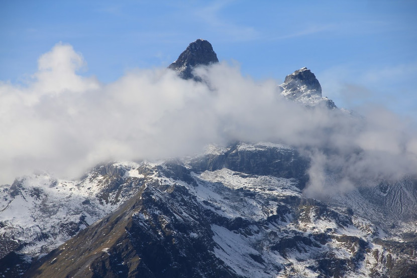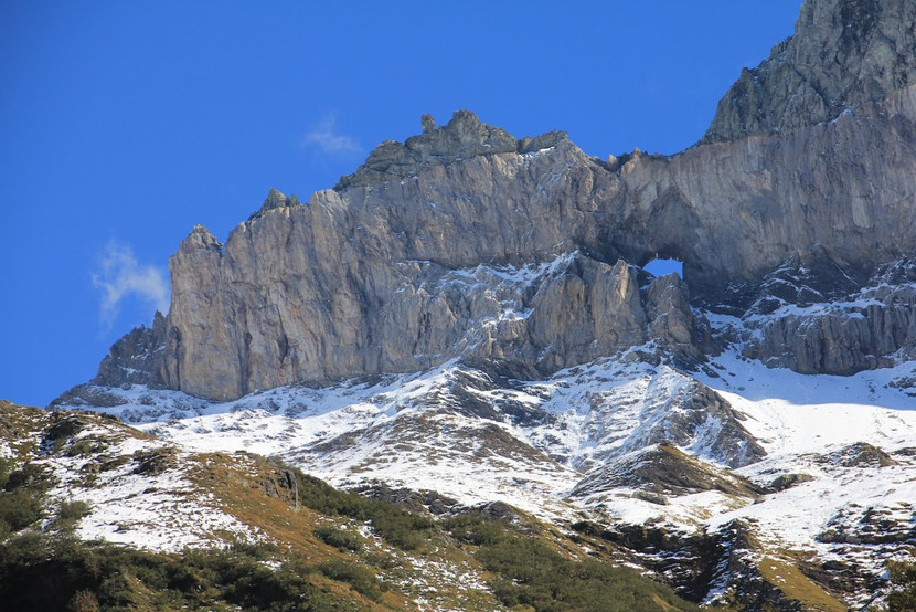 Unterwegs ab Elm zum Segnaspass - Ziel ist das Martinsloch. Dieses bleibt trotz des Traumwetters infolge Eis im Fels als Endziel verwehrt. Trotzdem eine eindrückliche Tour unter Begleitung von einem Heli der Heli Linth und der Ju 52 - welche 4 Jahre später hier am Segnaspass abgestürzt ist.